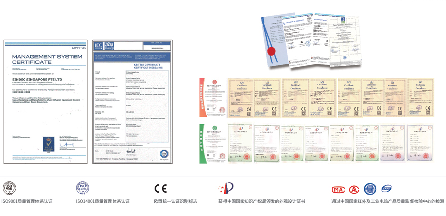英德?lián)碛?0項新風凈化行業(yè)領(lǐng)域?qū)I(yè)技術(shù),其中外觀發(fā)明專利2項。實用新型專利6項,并獲得CE認證,CB認證,IOS14001、IOS9001、OHSMS18001認證,產(chǎn)品性能檢測報告等多項資質(zhì)。